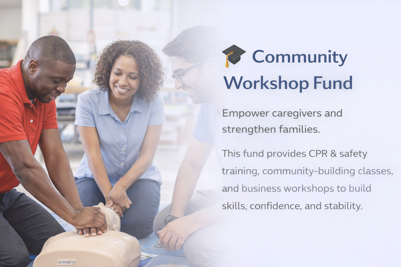 Community Workshop Fund Average Donation $0.00 The Community Workshop Fund invests in prevention, preparation, and empowerment.