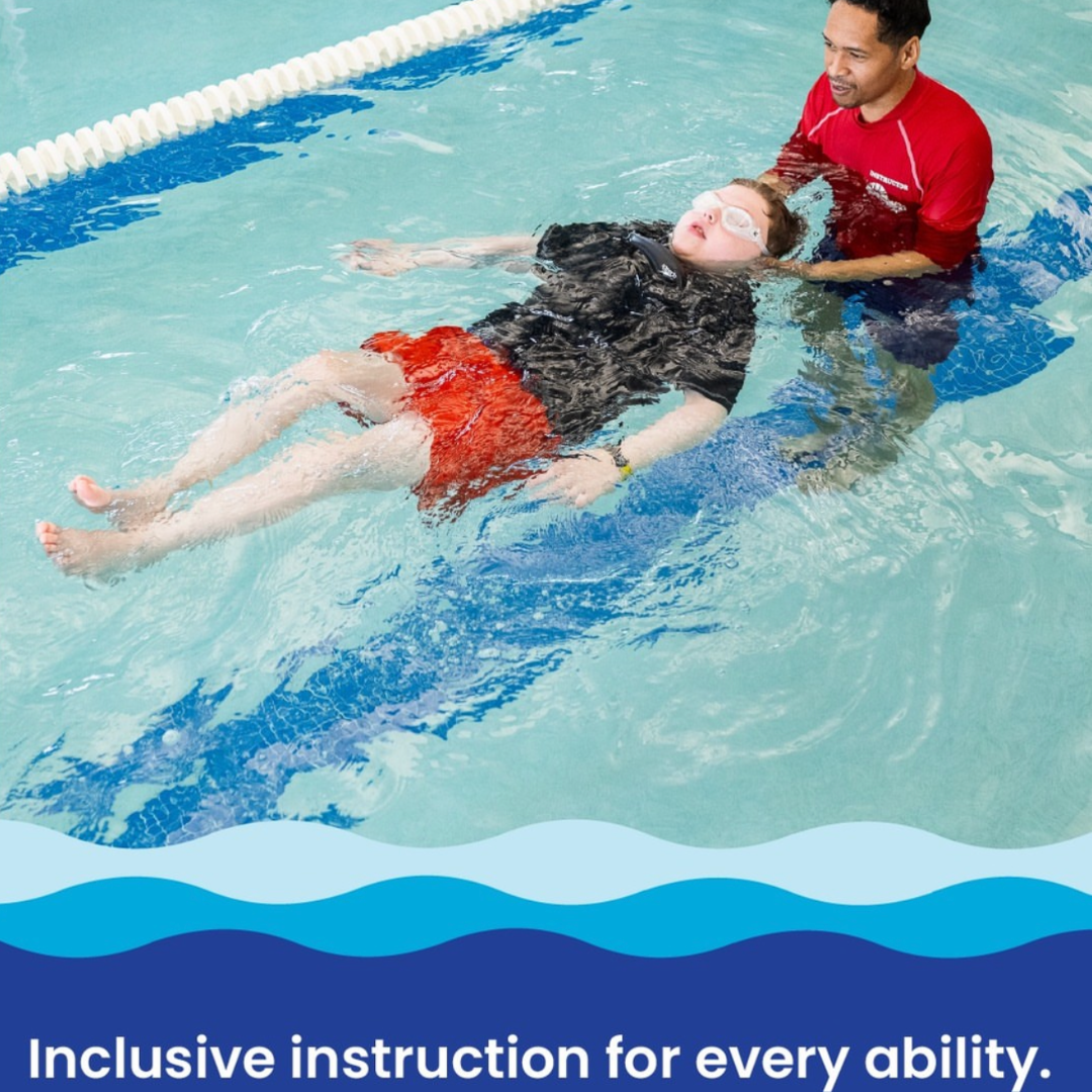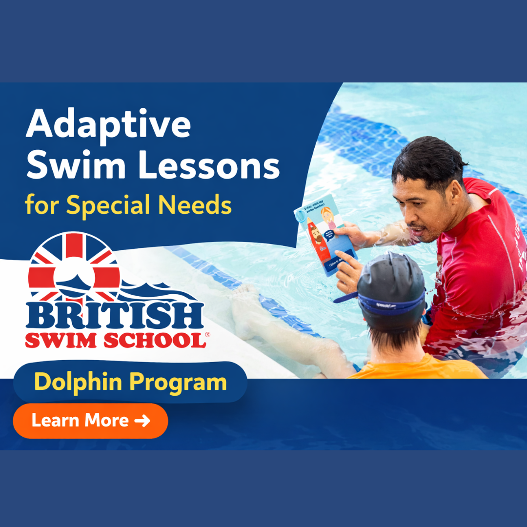 The Dolphin Adaptive Aquatics Program provides specialized swim instruction for individuals with developmental, sensory, or physical differences.