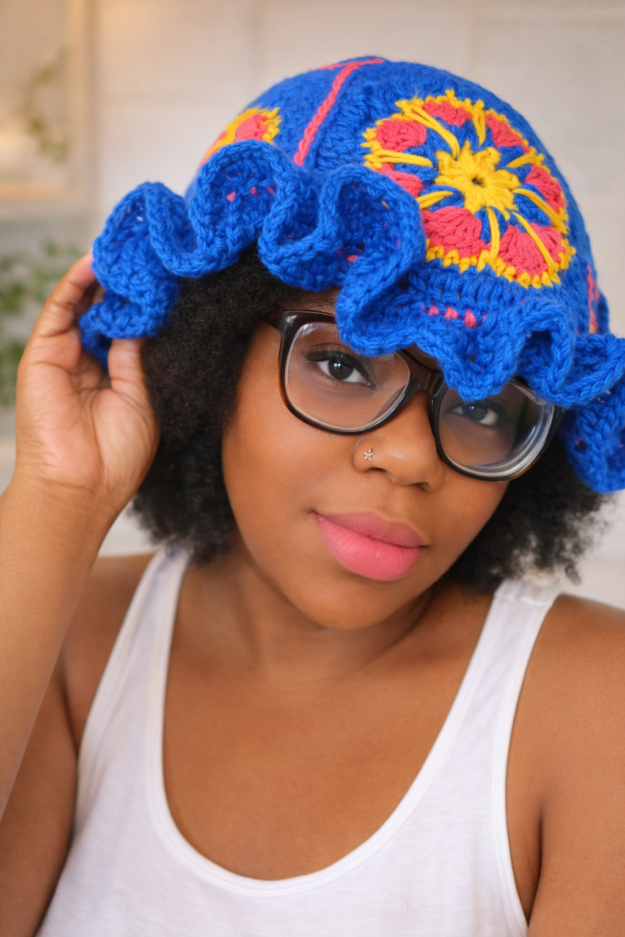 ((((Can take up to 2 week shipping depending on make time )))Size:S ,M,L XLThis piece is perfect for those who love to stand out with their fashion choices. Whether worn casually for a fun day out or as an artful statement in more dressed-up settings, this crochet hat offers versatility and flair. Its bold colors and intricate design would suit anyone looking to add a playful yet sophisticated accessory to their wardrobe. The ruffled details add a fun, feminine touch, elevating your look effortlessly.