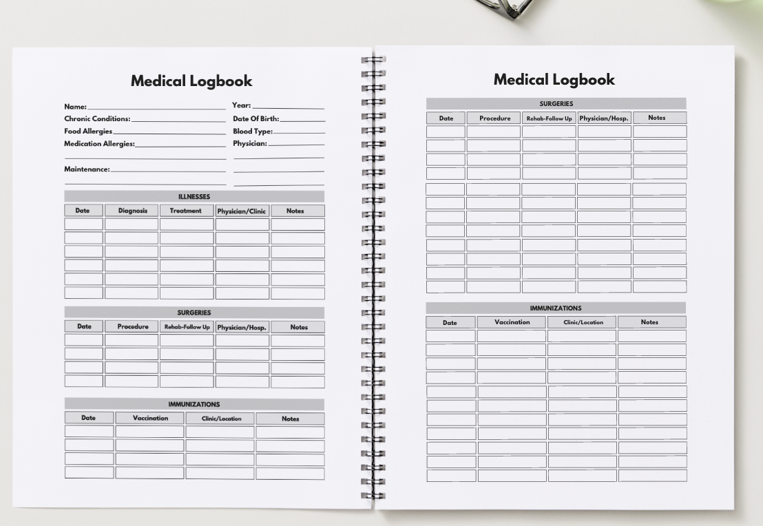 Medical Logbook | Printable Medical Records Tracker – Digital Download